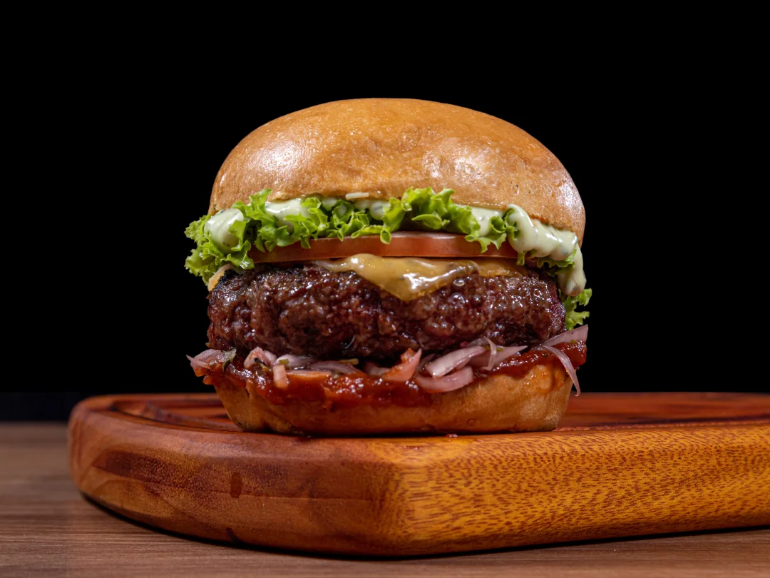 Pão brioche, blend 160g feito na parrilla, queijo prato, ketchup artesanaw, alface, tomate, picles artesanal de cebola roxa e molho aioli com ervas.